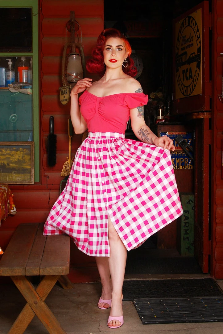 Meet Brigitte, the stretchy cotton/spandex knit cousin of our classic Peasant Top. With a sweet little puffed sleeve and adjustable plunging neckline, this top is equal parts sweet and sassy.