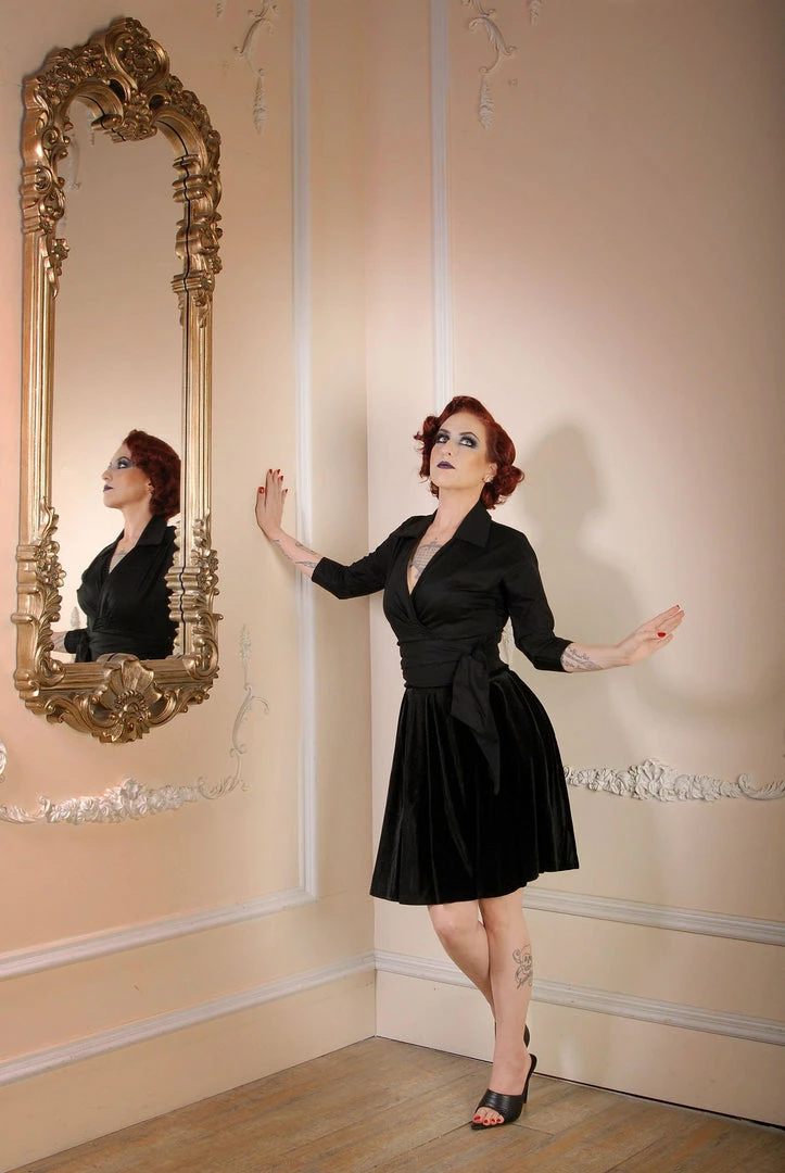 This classic Wrap Top is perfect addition for your entire wardrobe, the folded collar and crossover wrap front has a sophisticated look, while three-quarter sleeves are well suited for colder weather outings. The wrap around hem is a chic way to show off your curves and ensures a perfect fit. Made in delectable, easy wearing black sateen, you’ll look fashionable and feel wonderful whenever you wear this wrap top.