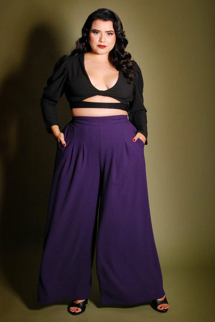 A perennial customer favorite due to the beautiful fit and silhouette they provide coupled with unparalleled comfort, these wide leg vintage inspired palazzo pants are made from a high quality poly/spandex stretch pebble crepe that drapes beautifully from tailored pleats. The waistband has elastic at back (on either side of the zipper) for a snug, yet comfortable fit at the waist, and there are deep side pockets. Fully lined.