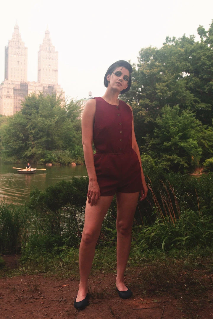 Sure to be one of your new favorite staples, the Edie Playsuit is a versatile little piece featuring a faux button front, back zipper, and warm weather friendly sleeveless design. The elasticized waist is oh-so figure flattering on it’s own, but certainly plays well with belts. This summer staple can be worn on its own, over your favorite swimwear, or paired with the Edie Skirt for a true retro look.