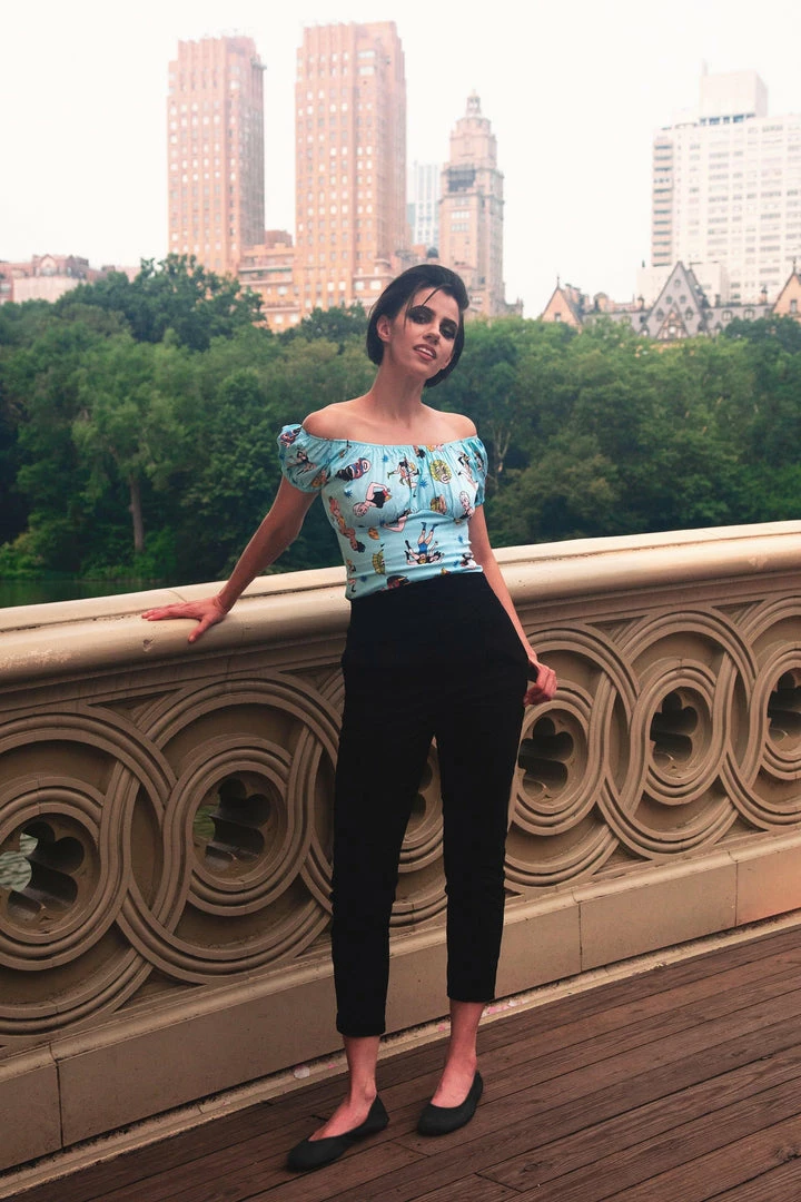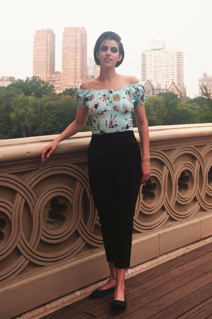 The Pinup Couture Peasant Top is the separate you never knew you needed. Wearable on or off the shoulders, there’s ample room for any size bust, and she’s long enough to tuck neatly into your favorite Bella, but looks just as cute untucked over a pair of Laura Byrnes California Denim Capris. Plus a convenient zipper that stops 1 inch above the hem for easy over–the-head access. Available in an array of colors in an ultra-comfortable sateen that will form to your body with a curved, gathered under-bust seam that will give you all the support you need.