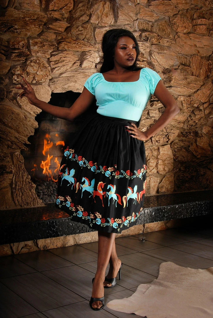 The Pinup Couture Peasant Top is the separate you never knew you needed. Wearable on or off the shoulders, there’s ample room for any size bust, and she’s long enough to tuck neatly into your favorite Bella, but looks just as cute untucked over a pair of Laura Byrnes California Denim Capris. Plus a convenient zipper that stops 1 inch above the hem for easy over–the-head access. Available in an array of colors in an ultra-comfortable sateen that will form to your body with a curved, gathered under-bust seam that will give you all the support you need.