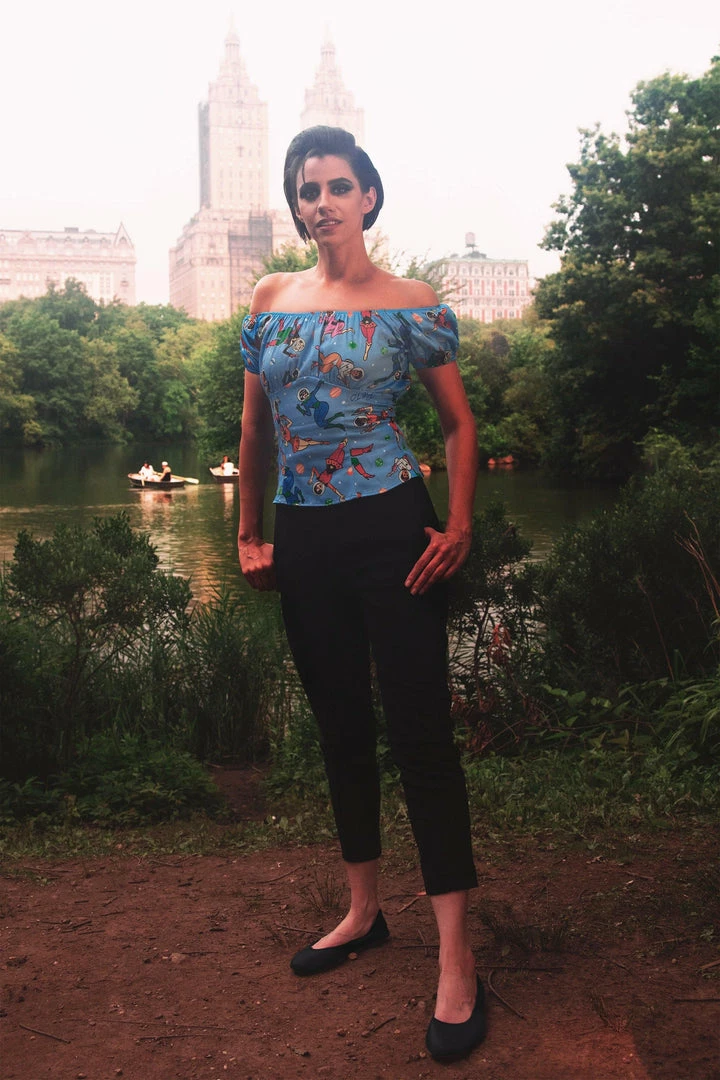 The Pinup Couture Peasant Top is the separate you never knew you needed. Wearable on or off the shoulders, there’s ample room for any size bust, and she’s long enough to tuck neatly into your favorite Bella, but looks just as cute untucked over a pair of Laura Byrnes California Denim Capris. Plus a convenient zipper that stops 1 inch above the hem for easy over–the-head access. Available in an array of colors in an ultra-comfortable sateen that will form to your body with a curved, gathered under-bust seam that will give you all the support you need.