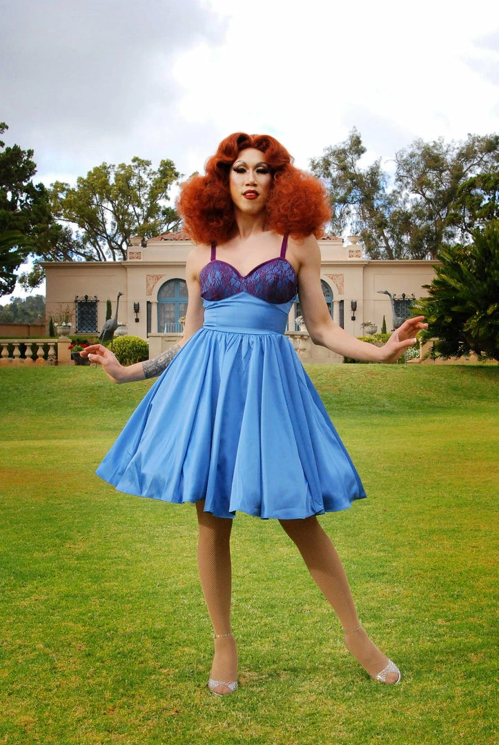 The Courtney dress features a full skirt, deep pockets, and a lingerie inspired, lace covered bodice, with piping and adjustable shoulder straps made from stretch velvet. Made from the highest quality stretch satin.
