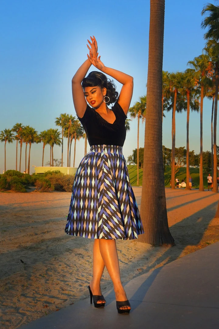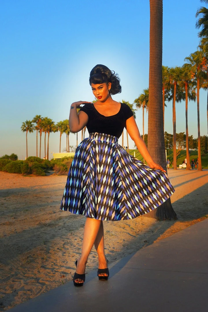 Final Sale – Doris Vintage Swing Skirt In House Harlequin Blue | Pinup Couture