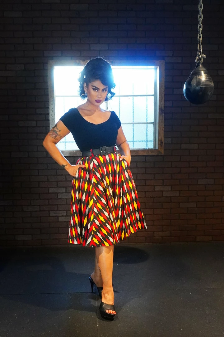 The Doris skirt is a elegant swing skirt with a full sweep and no gathers or pleats. However, it’s the 21st century, so this skirt has deep pockets. Designed as a callback to the true circle skirts of the 1950’s, It has a nipped in waistband, a back zipper, deep pockets, and loops for a wide belt. Â