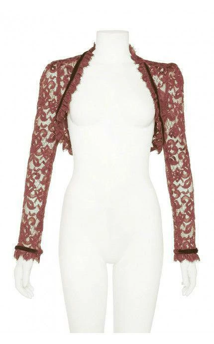 Perfect to accompany any ensemble, the Gothic Lace Bolero is decadently dreamy with its all-lace body fringed in three-dimensional eyelash lace at the neckline and cuffs. The high neckline and black stretch velvet trim add yet more glamour, and creates an unforgettable look that you can wear over and over again. This high-quality, impeccably crafted stretch lace bolero is a must have for your wardrobe.