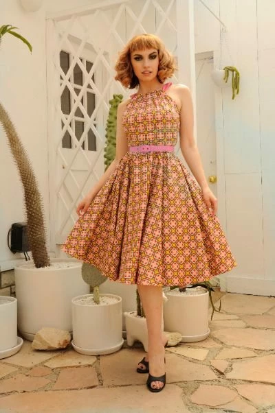 Stand out from the crowd in this fantastic sundress – designed to be both modest for the office and chic for your days off! The Harley Swing Dress has darting at the bust, with a nipped in waist and a full gathered skirt. Featuring a gathered neckline, a zipper in the back that goes from nape to waist, and pockets in the side seams, this dress is a cheeky way to show off your silhouette.
