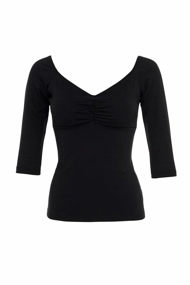 Brigitte Gathered Short Sleeve Peasant Top Top In Navy Blue | Laura Byrnes Design