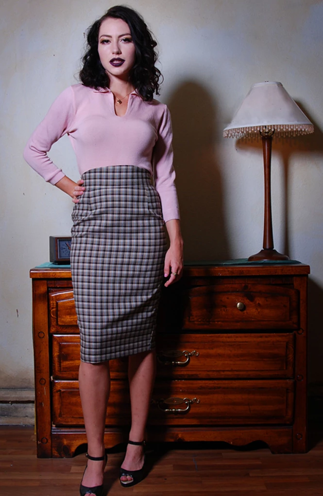Final Sale – Vintage High Waist Pencil Skirt In Peacock Plaid | Laura Byrnes Design