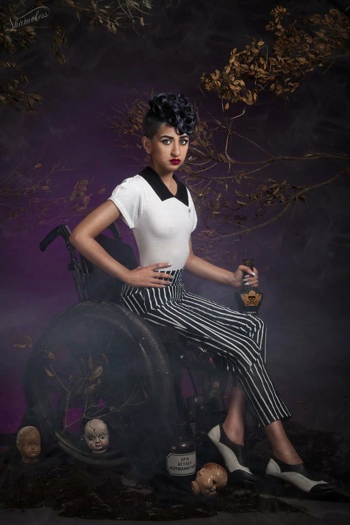 These perfectly tailored high waisted cropped trousers are made from a 97% cotton, 3% spandex stretch twill, and feature an empire waistline (with a subtle curve at the top) and elastic panels at back, to insure a perfect comfortable fit at both your hips and waist. Side pockets, back zip, and tapered to mid-calf. These trousers will quickly become your most reched-for every day piece, as you’ll find they work for nearly any setting, be it work or play.