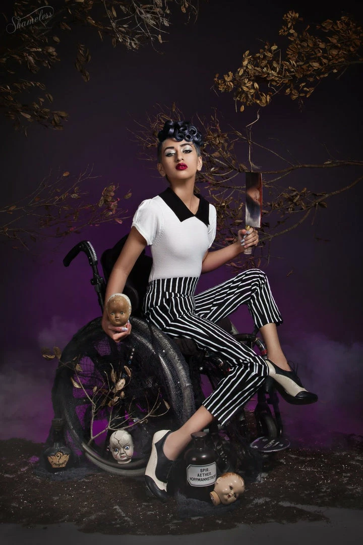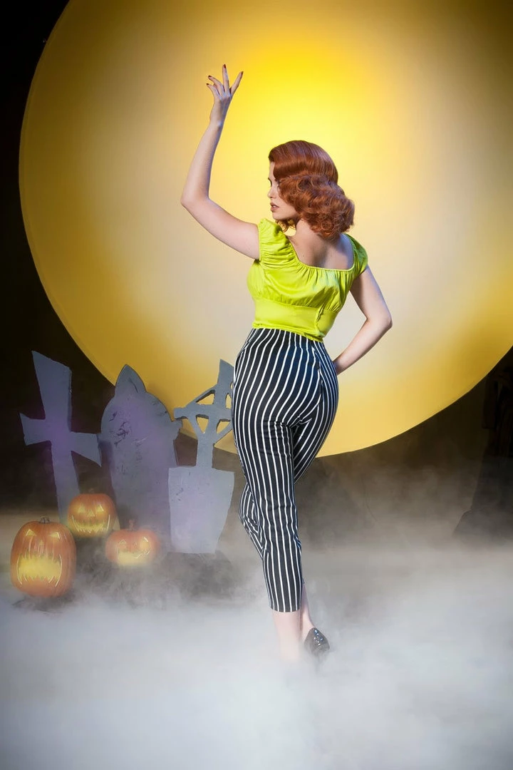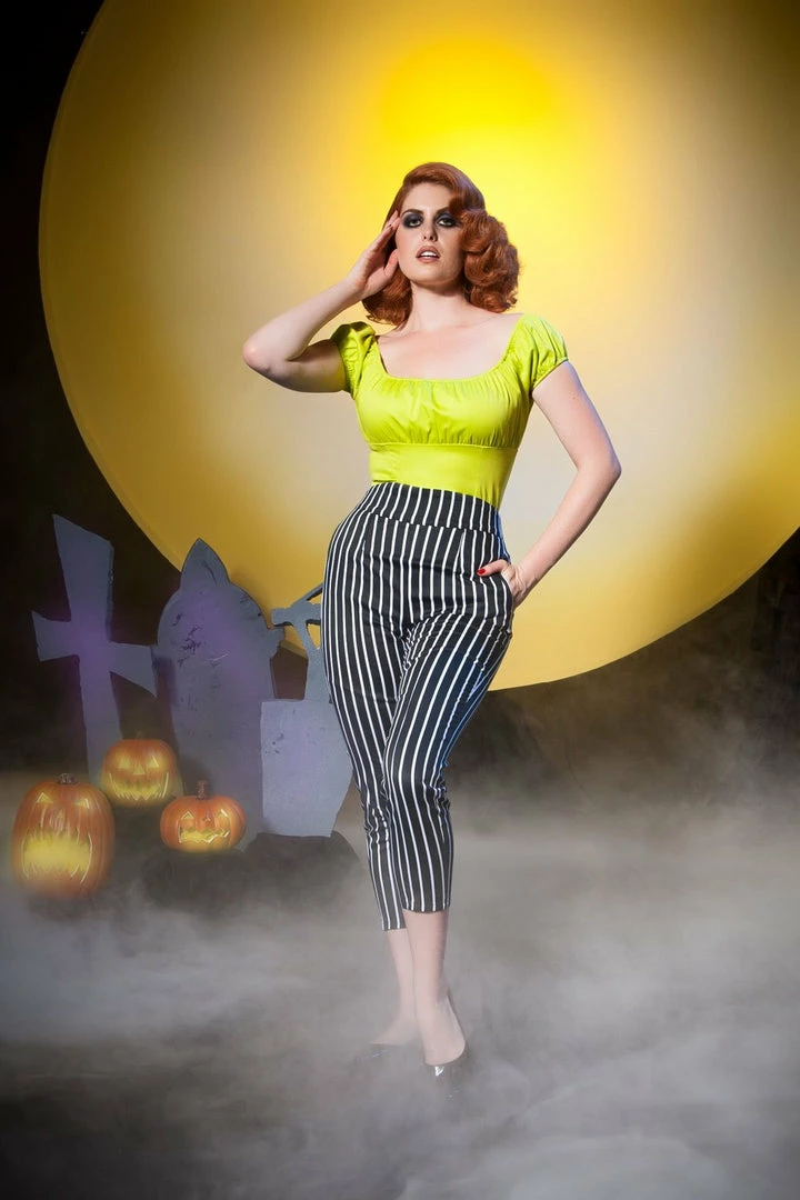 These perfectly tailored high waisted cropped trousers are made from a 97% cotton, 3% spandex stretch twill, and feature an empire waistline (with a subtle curve at the top) and elastic panels at back, to insure a perfect comfortable fit at both your hips and waist. Side pockets, back zip, and tapered to mid-calf. These trousers will quickly become your most reched-for every day piece, as you’ll find they work for nearly any setting, be it work or play.