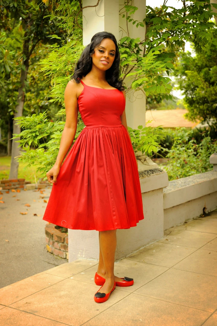 Inspired by an early 1960s sundress design, our classic Jenny Dress is a flirty full skirted, retro dream with a bodice that is boned and fused throughout. This gives your bust amazing structure while beautifully cinching your waist in. The straps are adjustable to accommodate a large range of bust sizes, no matter if you’re smaller or fuller in that area. The Jenny Dress is now considered a Pinup Girl favorite, as it gives you the effortless option of wearing it to work with a cardigan or transitioning to effortless drama for cocktail hour. Made in our beautifully luxe cotton sateen which breathes as you wear it, but will not lose its shape giving you wear for years to come. This dress has a full gathered skirt with deep side pockets and is finished off with a long back zip.
