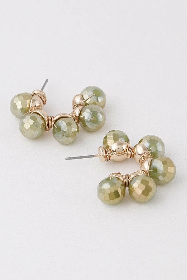 Colorful crystal beaded half hoop earrings with stud back detail for comfort.Â
