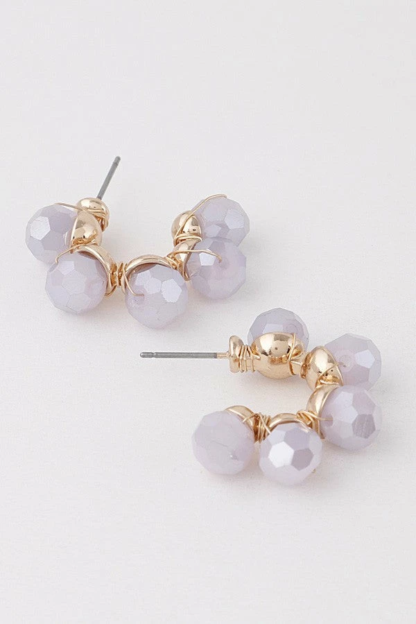 Colorful crystal beaded half hoop earrings with stud back detail for comfort.Â