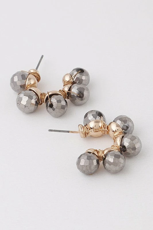 Colorful crystal beaded half hoop earrings with stud back detail for comfort.Â