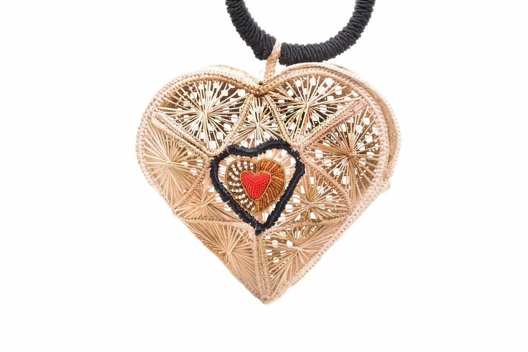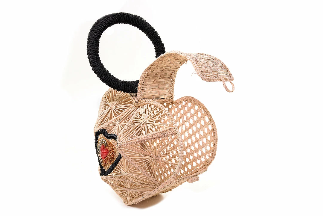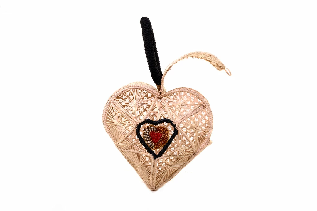 Imported by Pinup Girl Clothing exclusively for you, this hand woven natural raffia heart shaped purse is the special piece your collection has been missing. From a lunch date with the girls to a night out with that special someone, the Sagrado Corazon bag will have everyone gasping, “Where did you get that?”