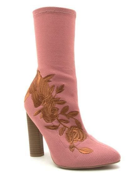 Hot Issue Fashion – FashionGo Shop All In-Stock Items By Size Final Sale – Flora Embroidered High Heel Booties In Rose