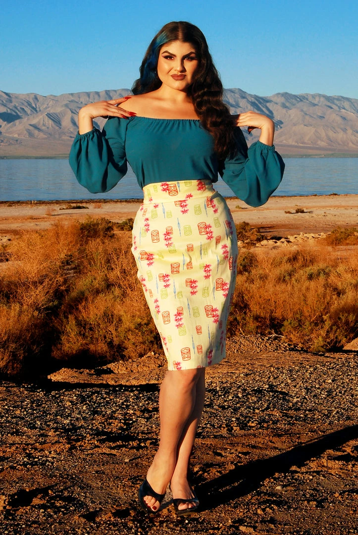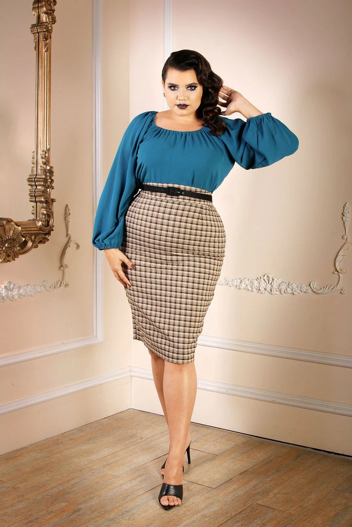 The Sylvie Long Sleeve Peasant Top is unlined in a 3% spandex stretch poly crepe and featuring roomy bishop sleeves, an unfitted, roomy bodice and an elasticized neck.