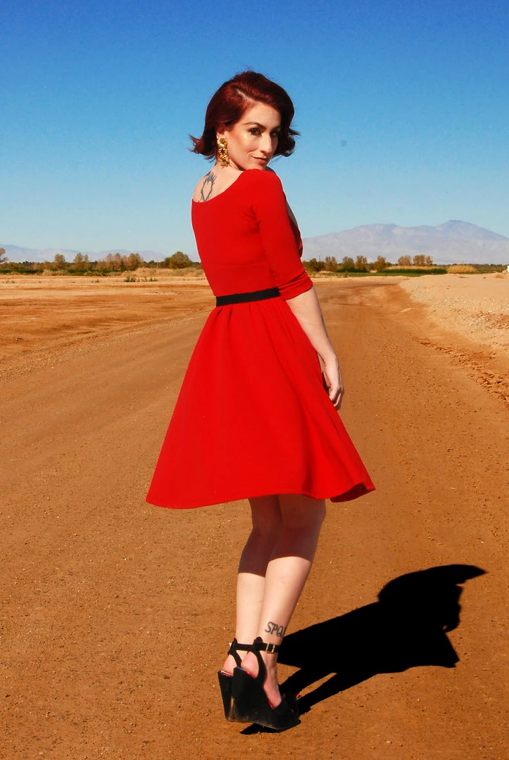 The Kayla Dress is as soft, stretchy and flattering as her sister separate she originated from. Kayla features a fitted bodice with gathers at the bust, a slightly gathered full skirt with an elasticized waistline, and 3/4 length sleeves. If your 9-to-5 job is more casual, this dress is ideal for a long day at the office. Or keep her in your car for a quick change when you clock out for the day because she barely wrinkles! She will be a favorite style for those weekend getaways or make those boring adult errands a little more fun without compromising your style.