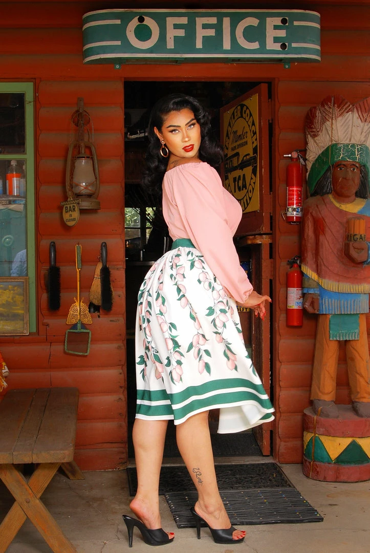 Created by designer Laura Byrnes, we present you the Sylvie Long Sleeve Peasant Top. Unlined in a printed stretch poly crepe and featuring roomy bishop sleeves, an unfitted, roomy bodice and an elasticized neck. Can be worn on or off the shoulder.