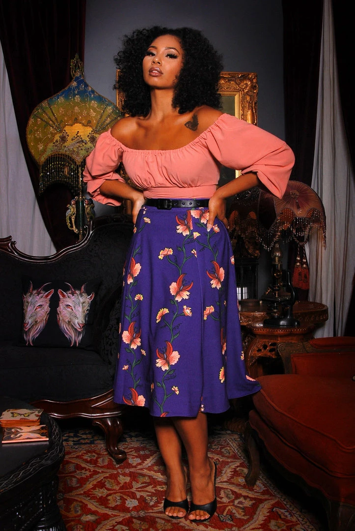 We took the flowing sleeves of our Gia Gown for added 1930’s inspired elegance and combined them with the curved bustline of our Peasant Tops to better accommodate bigger busts while also being super flattering on smaller chests. This top also features elasticized wrists, an elasticized neckline that can be easily worn on or off the shoulders, and an easy zip at the back. Made from our classic stretch poly crepe, this top is made for all day comfort.Â