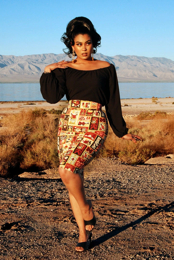Created by designer Laura Byrnes, we present you the Sylvie Long Sleeve Peasant Top. Unlined in stretch poly crepe and featuring roomy bishop sleeves, an unfitted, roomy bodice and an elasticized neck.