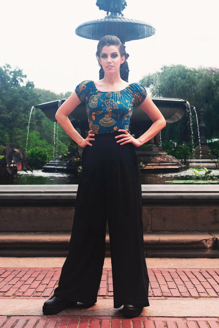 The Pinup Couture Peasant Top is the separate you never knew you needed. Wearable on or off the shoulders, there’s ample room for any size bust, and she’s long enough to tuck neatly into your favorite Bella, but looks just as cute untucked over a pair of Laura Byrnes California Denim Capris. Plus a convenient zipper that stops 1 inch above the hem for easy over–the-head access. Available in an array of colors in an ultra-comfortable sateen that will form to your body with a curved, gathered under-bust seam that will give you all the support you need.