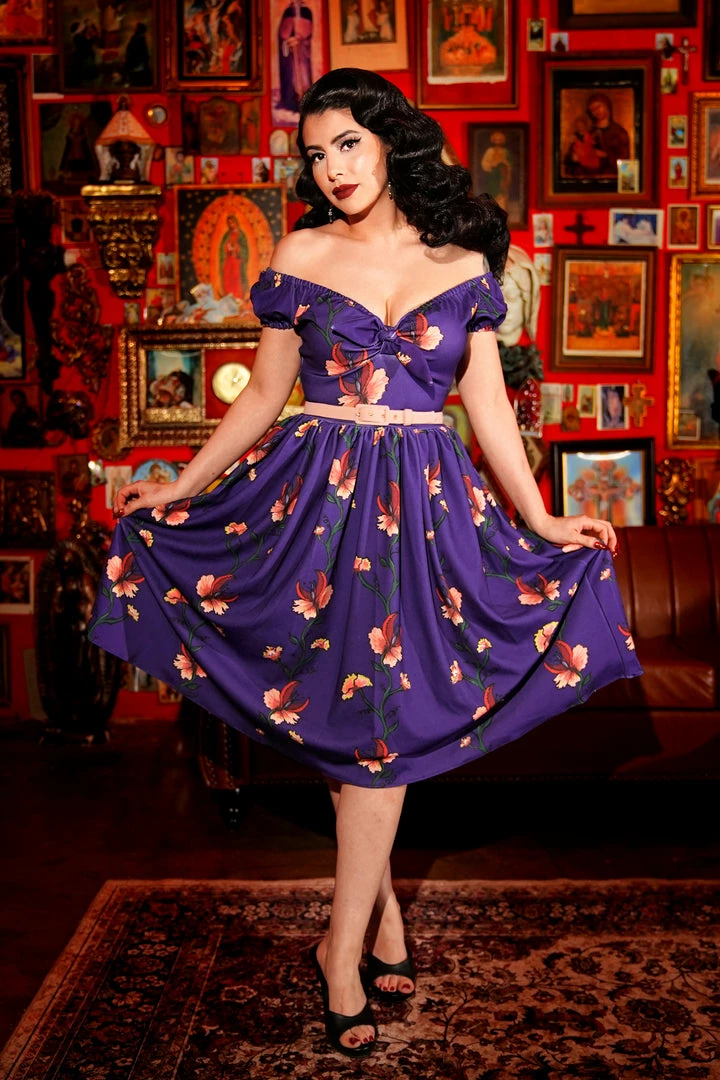 The Natalie in ManTrap print is gorgeous, comfortable, and easy to wear! Featuring gathers in the center of the bust-line which accentuate shapes of all sizes and is topped off with an adjustable bow tie for a little more – or less – emphasis on your cleavage. The full skirt is constructed with generous pockets large enough to hold any cell phone.