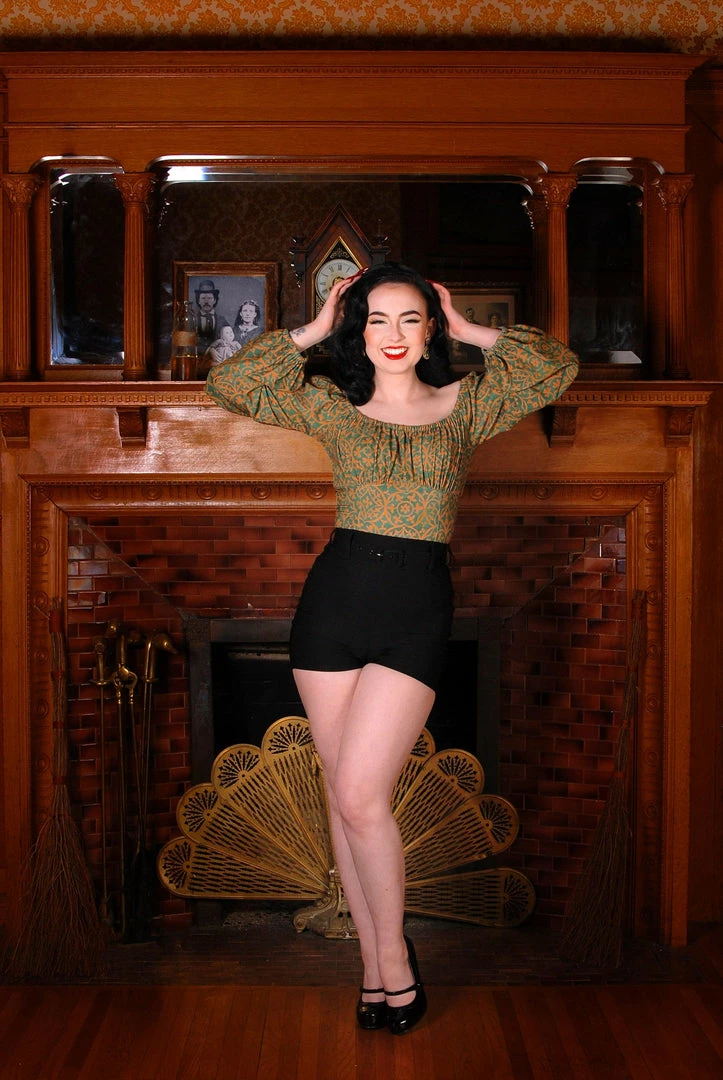 We took the flowing sleeves of our Gia Gown for added 1930’s inspired elegance and combined them with the curved bustline of our Peasant Tops to better accommodate bigger busts while also being super flattering on smaller chests. This top also features elasticized wrists, an elasticized neckline that can be easily worn on or off the shoulders, and no closures for a fuss-free pullover fit. Made from our classic stretch poly crepe, this top is made for all day comfort.