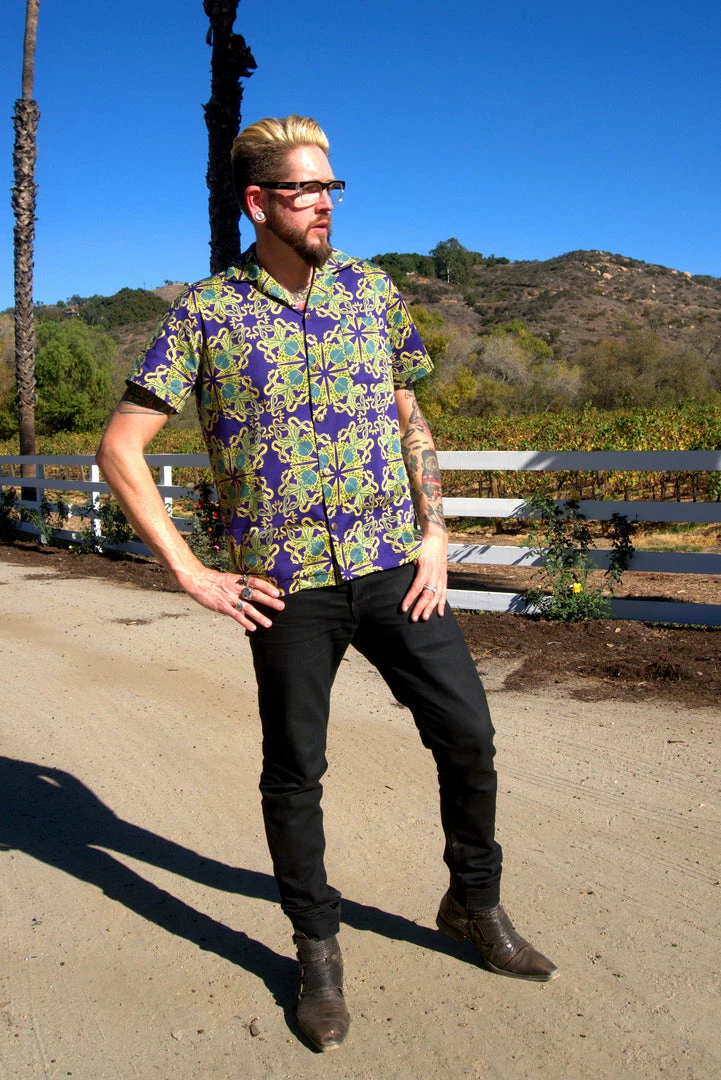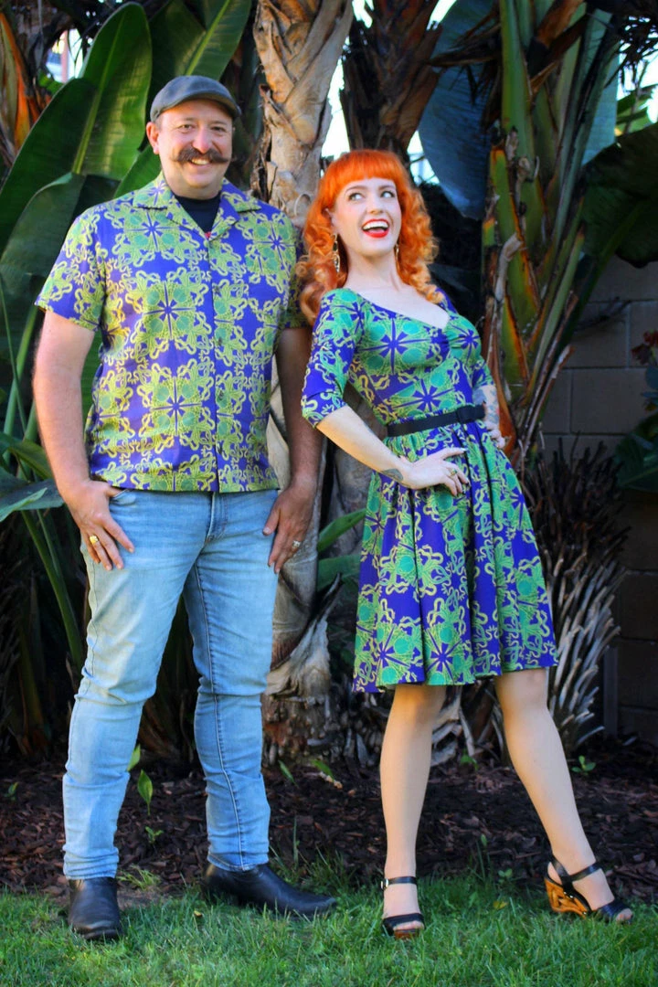 This retro style Bowling Shirt is Pinup Girl Clothing’s tribute to the ultra cool folks who support their pinup partners. Our sinister cotton sateen bowling shirt boasts a spread collar, front button closure, and short sleeves. Match with any of our other Daddy Cthulhu items!