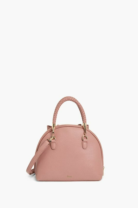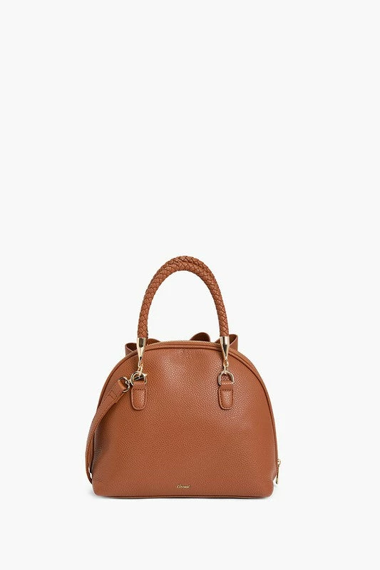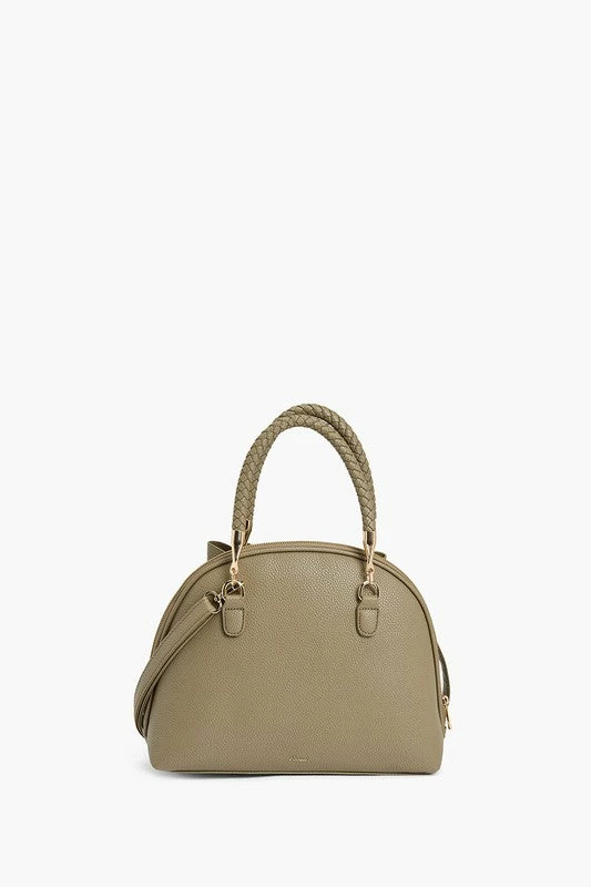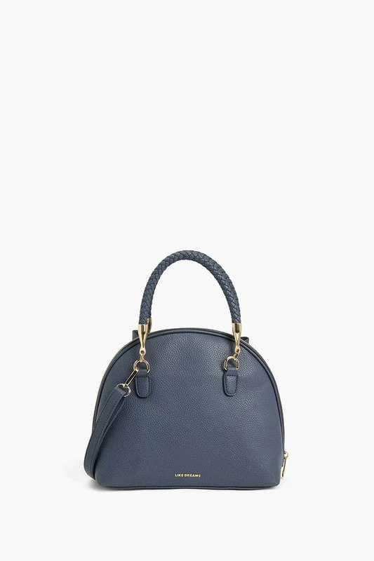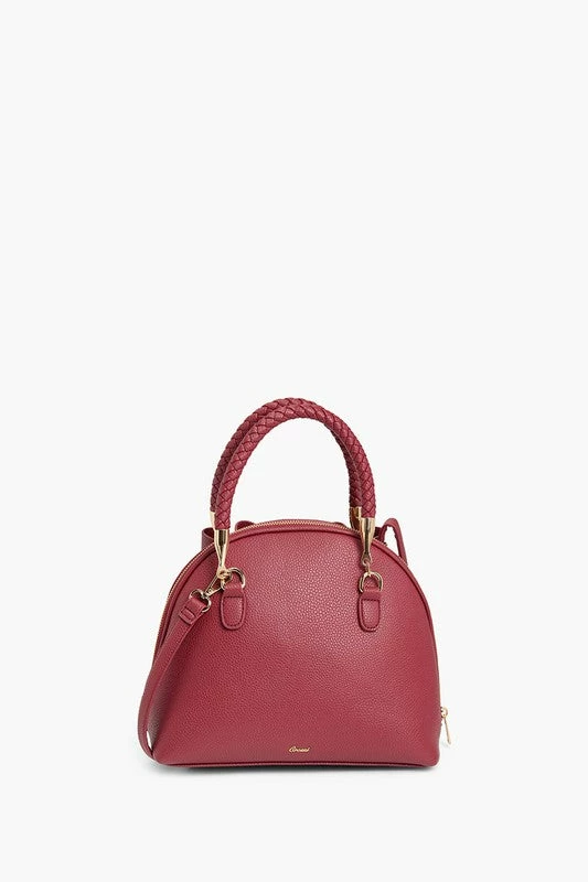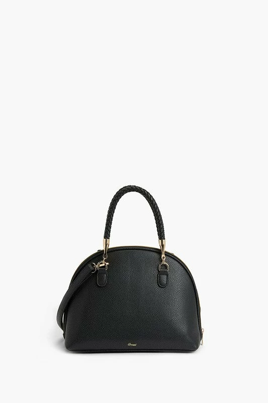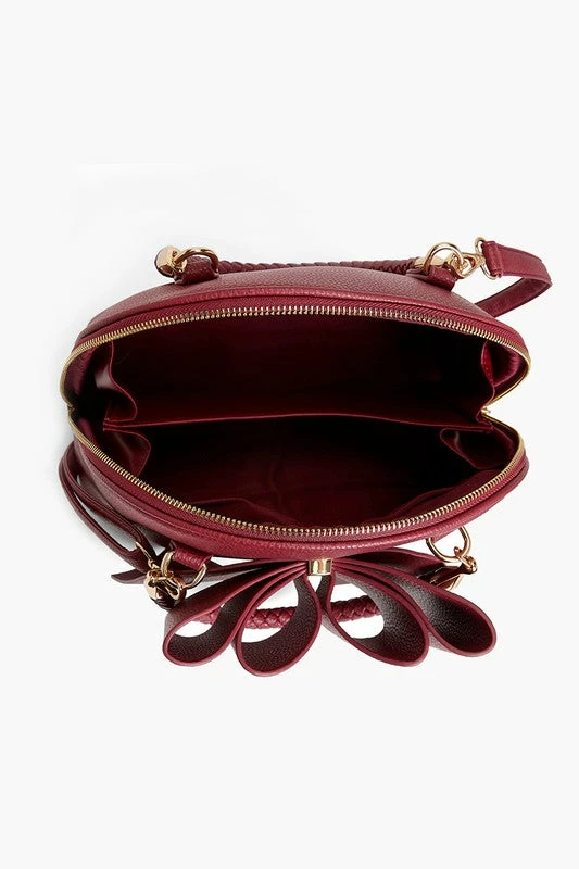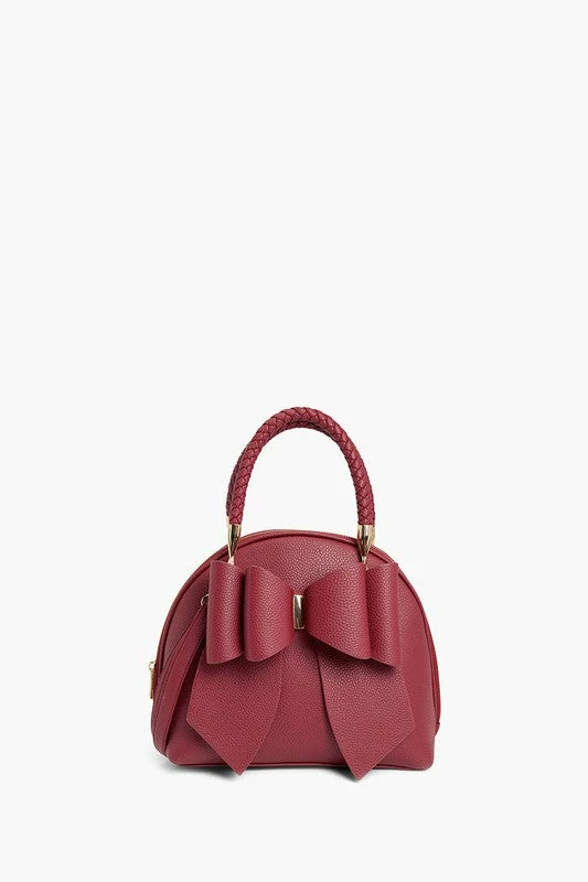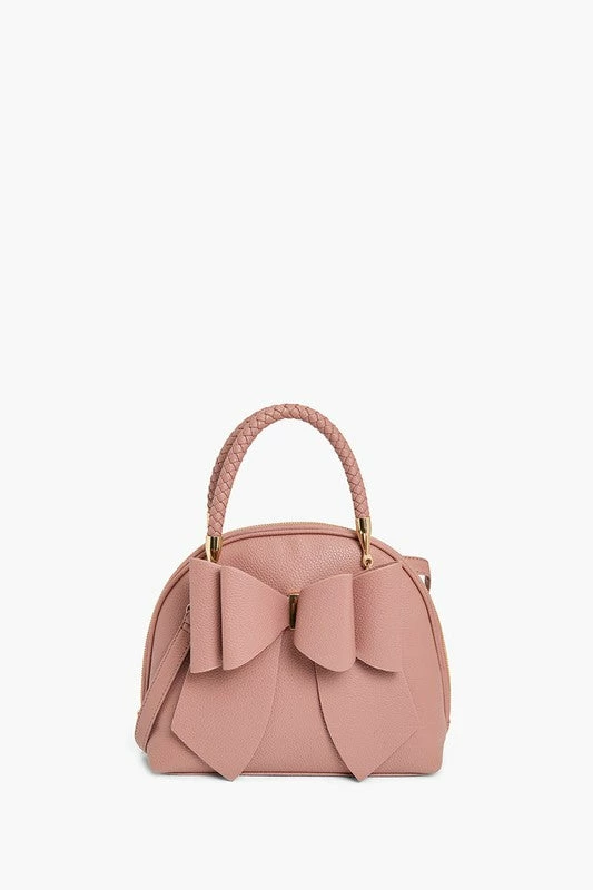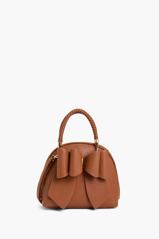 This mid-size satchel style purse features a stylish leather braided top handle, and the front is adorned with a double bowtie. Wear it as a top handle bag or as a shoulder bag using the detatchable and adjustable leather straps. Organise all your belongings with the two spacious inner compartments.