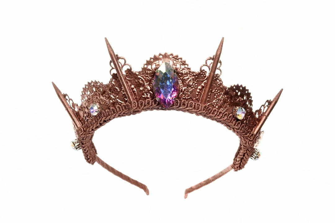 You can have your cake and eat it too in this gorgeous crown fit for a Dauphine! Gilded swirls and stamped arches are hand-sewn to this sturdy, but regal headpiece reminiscent of the Libertine Half Crown with glittering crystals. Comfortable and lightweight, one size fits all – bobby pins can easily be used for added security. Perfect for a special occasion, but it never hurts to remind them who’s royal every day.