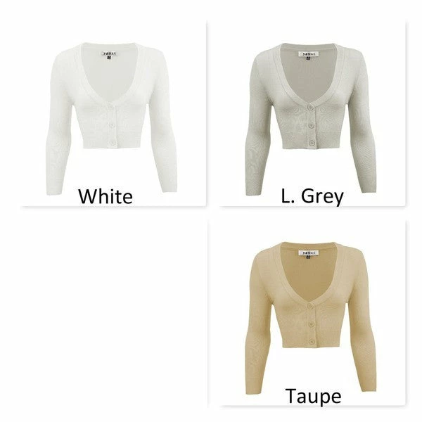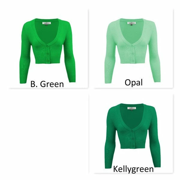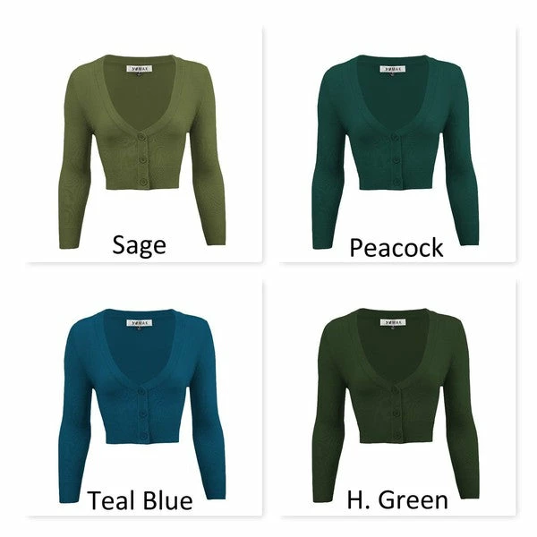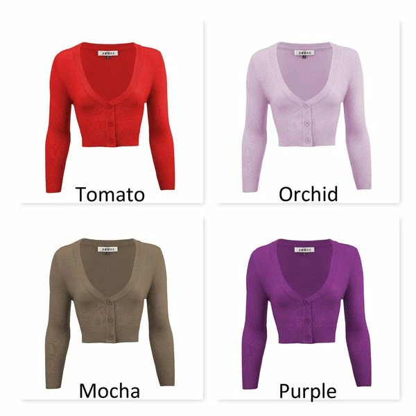 Party with a cardi! These super soft acrylic/nylon blend cardigans are a Pinup Girl’s best fashion friend and will keep you comfy all year round. With a three-button closure and a cleavage enhancing V-neck, this 3/4-length sleeve cropped cardigan is the best cover-up to top off your outfit and help you look perfectly put together.