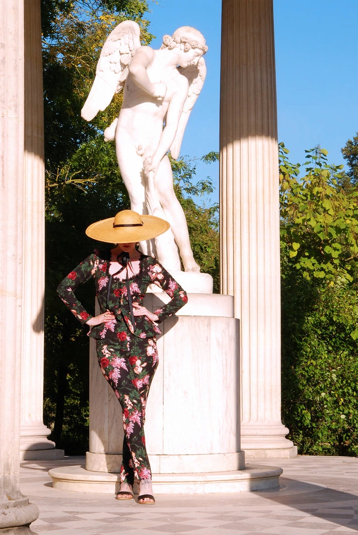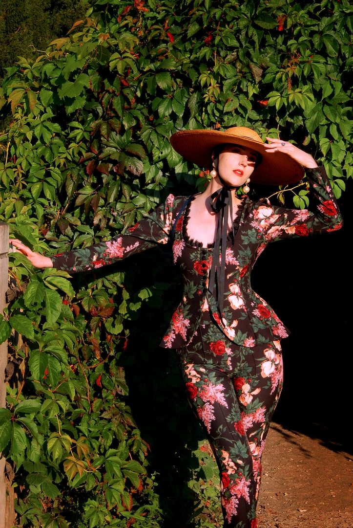 A statement jacket that requires only a few words, the Mariette jacket is inspired by our beloved Morgana style which is reminiscent of a classic riding habit jacket and updated with a clean, modern chicness. Much like Morgana, Mariette is designed to take the tailored women’s jacket to a whole new level: the scoop neckline is trimmed in black eyelash lace which draws the eyes downward to a row of buttons in the front, while the corset back laces up to cinch your waistline to your preference. The bustle of the jacket creates an hourglass silhouette and can be adjusted to accommodate two different sizes.