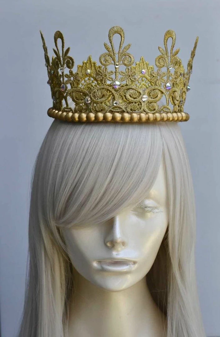From the creator of the Bella Marie Halo Crown comes another beautiful, hand-made piece of wearable art. The Mary Elizabeth crown stands 3.5″ tall and is made of starched, gold lace decorated with glittering gems. Combs on either side help secure the crown to any hairdo while the bendable frame makes it easy to adjust to different head sizes. Exclusive to Pinup Girl Clothing, this crown by Scarlet Harlow is pure royalty and sure to put all eyes on you.