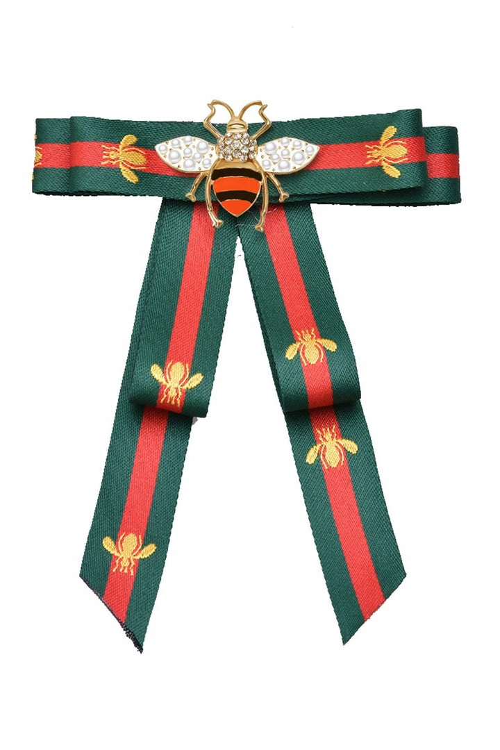 The only thing you need to know about the bows and the bees is how damn cute you’ll look wearing them. This brooch makes for a darling addition to any outfit, featuring a double layer of orange and green ribbon adorned with gold bees, tied into a smart bow, and finished with a large faux-gold bee pendant covered in pearls and rhinestones. This brooch measures 7.5″ x 5.5″