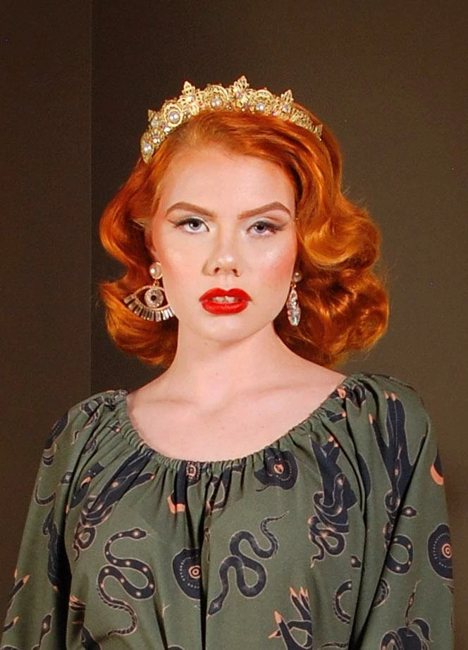 A glam take on the Evil Eye symbol, these gorgeous statement earrings feature the traditional eye shape lined with pearls with crystal pave irises, onyx pupils, and lashes made of rectangular baguette rhinestones that are just so on-point. They drop from post back pearls that nestle at your lobes so prettily. Pair with an elegantly disheveled up-do and a daring, but romantic neckline like the Lucrezia Renaissance Maxi Gown in Ivory Stretch Crepe .