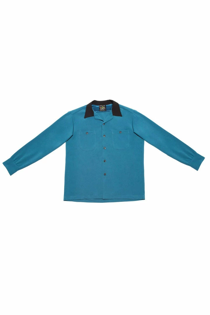 Vintage New York style in modern fabrics and fit, this long sleeve button-up is a hip vintage style. Featuring a black contrasting collar and buttons that pop against vibrant teal gabardine, as well as front chest pockets, the New Yorker is a delightful addition to your wardrobe. You’ll want to pick up one in every color!