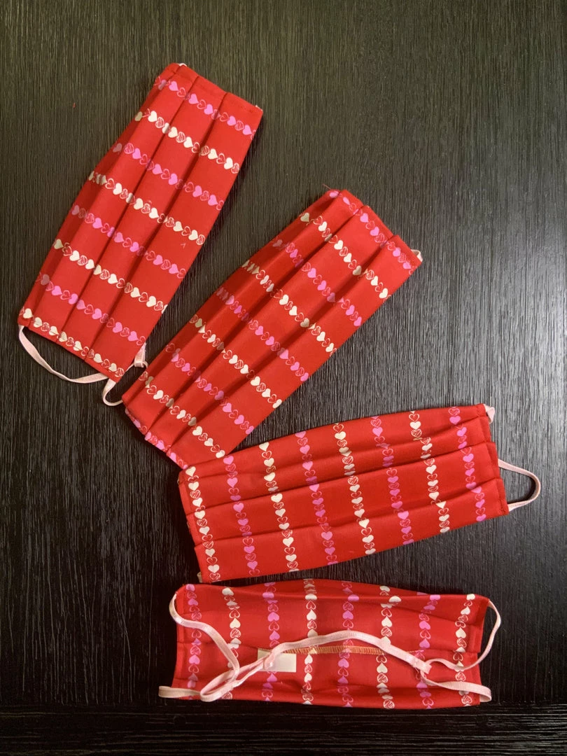 Pinup Girl Clothing Final Sale – Social Distancing Fabric Masks – Set Of 4pcs – Adult – Style #7 – Heart Pinstripe Print Cotton Sateen