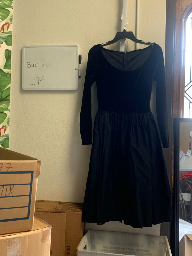 Amara Long Sleeved Swing Dress In Black Crepe | Pinup Couture