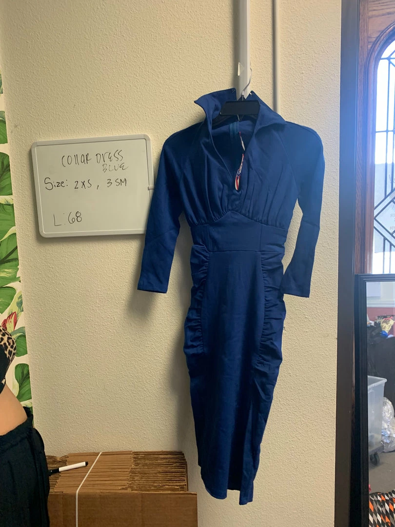 OYS Blue Ponte Collared Wiggle Dress