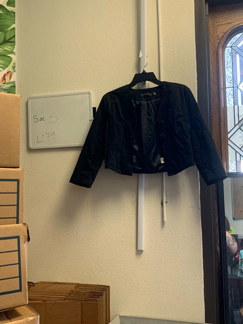OYS Cropped Laura Byrnes Jacket in Black Sateen