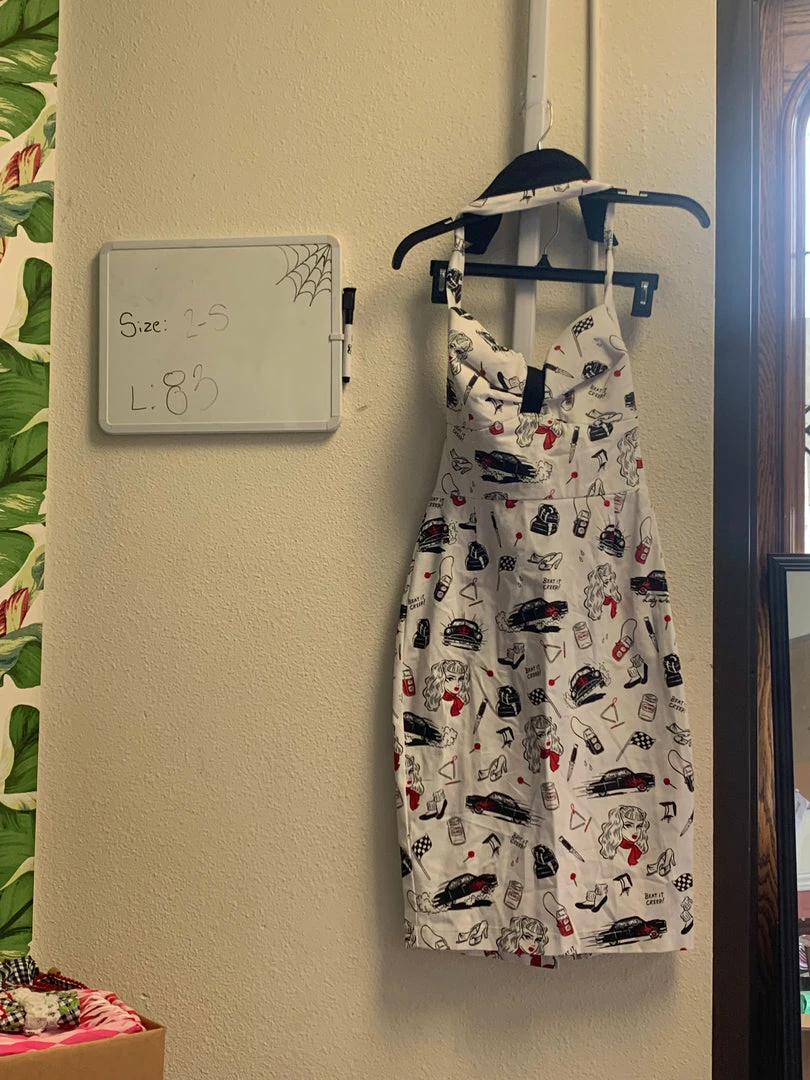 OYS Halter Wiggle Dress in Juvenile Delinquent Print