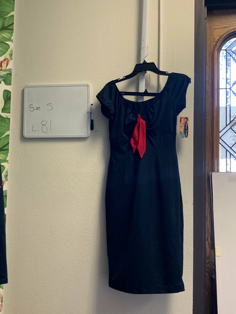 OYS Natalie Wiggle Dress in Black with Red Trim