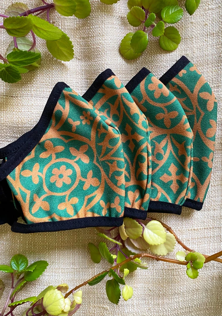 Mask is style #8. This set of four fabric masks measure 8″ x 5″ and covers the top of the nose down to underneath the chin. Fabric is 97% cotton, 3% spandex cotton sateen. Mask is made with an inside pocket to hold a filter. Mask can be worn over an n95 mask to extend its use. Change masks after 4 hours of wear. Machine wash cold and dry low before use.