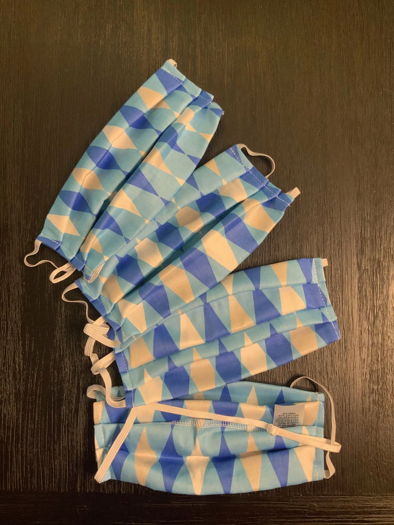 Pinup Girl Clothing What’s New, Pussycat? Social Distancing Fabric Face Masks – Set Of 4pcs – Style #5 – Adult – Ice Blue Harlequin Print Cotton Sateen