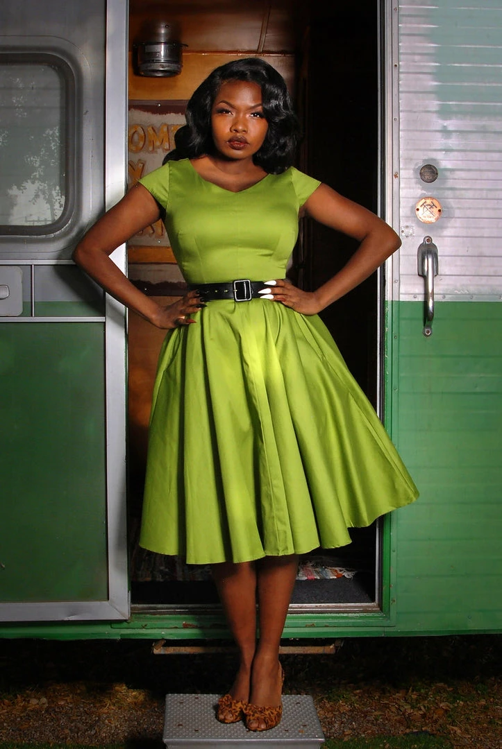 The Celia Vintage Swing Dress is a great find! The olive color is so unique and the cotton sateen is so comfortable. The fit is perfect and I love the vintage look.