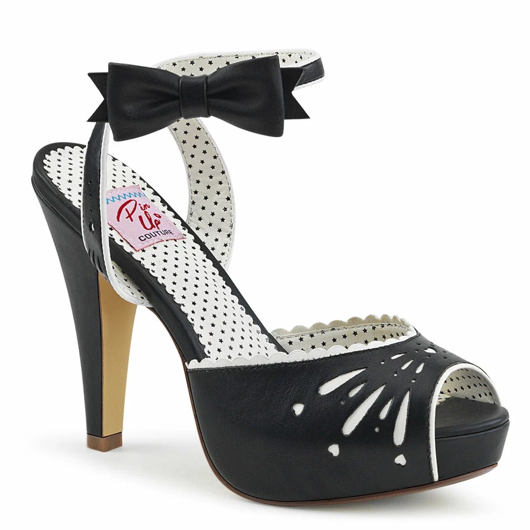 Pleaser Bow Peep Toe Bettie Heel In Black Faux Leather