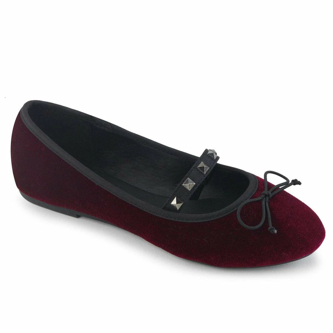 SKU: shoes-6611114000438 Categories: Collections, Flats, New Arrivals, New Arrivals, Shoes, Shop Shoes & Accessories, Under $20, Under $60, What's New, Pussycat? Tags: Burgundy, Color_burgundy, Goth, Shoes, Shoes_flats, Studded, Velvet, Velvet Crush